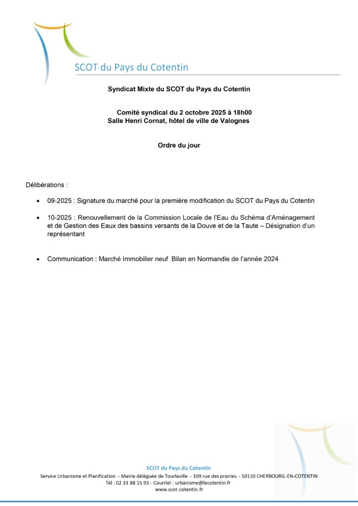 Comité syndical du 02 octobre 2025 – ordre du jour